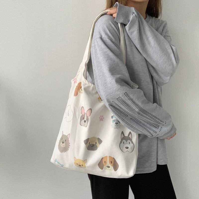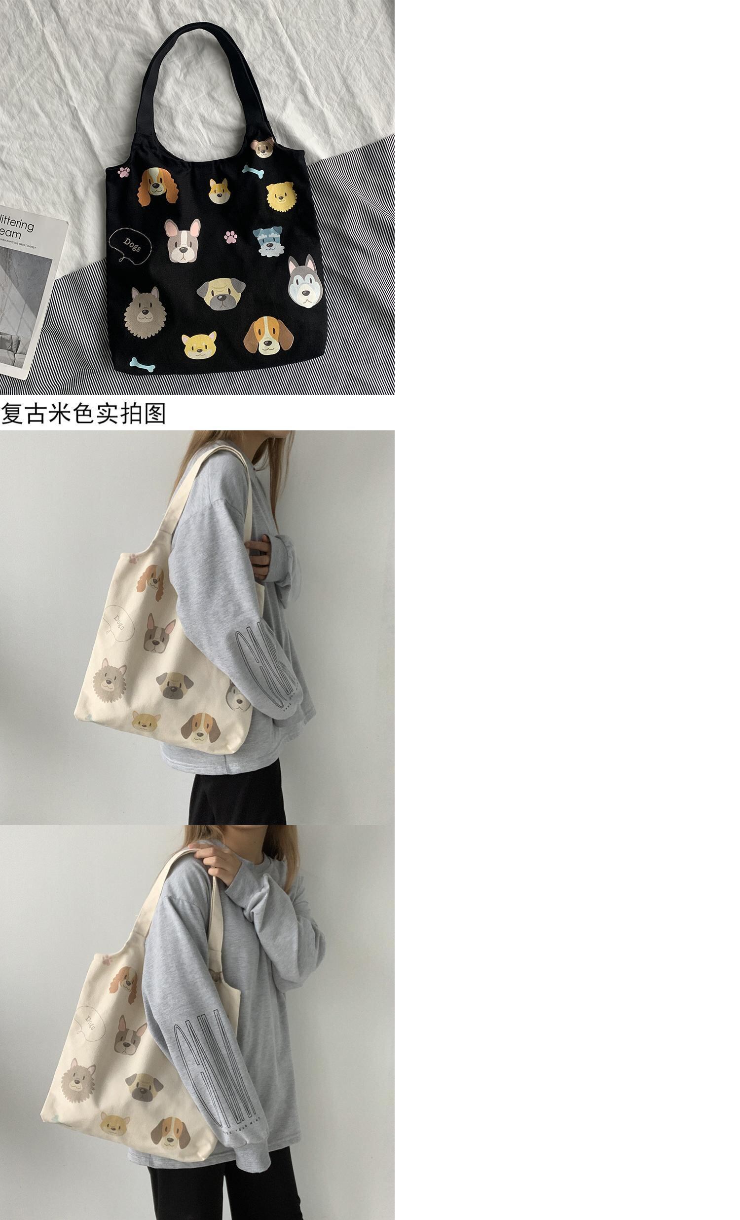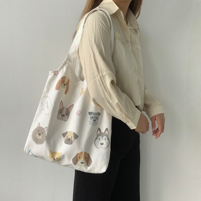 色:犬イラストベージュバッグ,犬イラストミルキーホワイトバッグ,犬イラスト黒バッグ