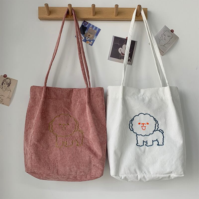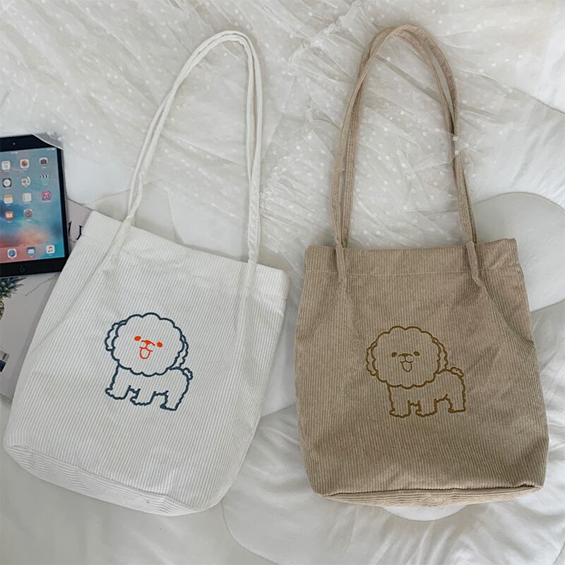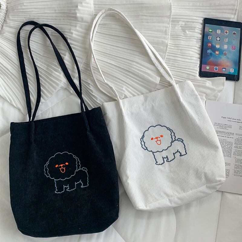 色:子犬刺繡コーデュロイレザーパウダー,子犬刺繡コーデュロイブラック,子犬の刺繍入りコーデュロイカーキ,子犬刺繡コーデュロイホワイト