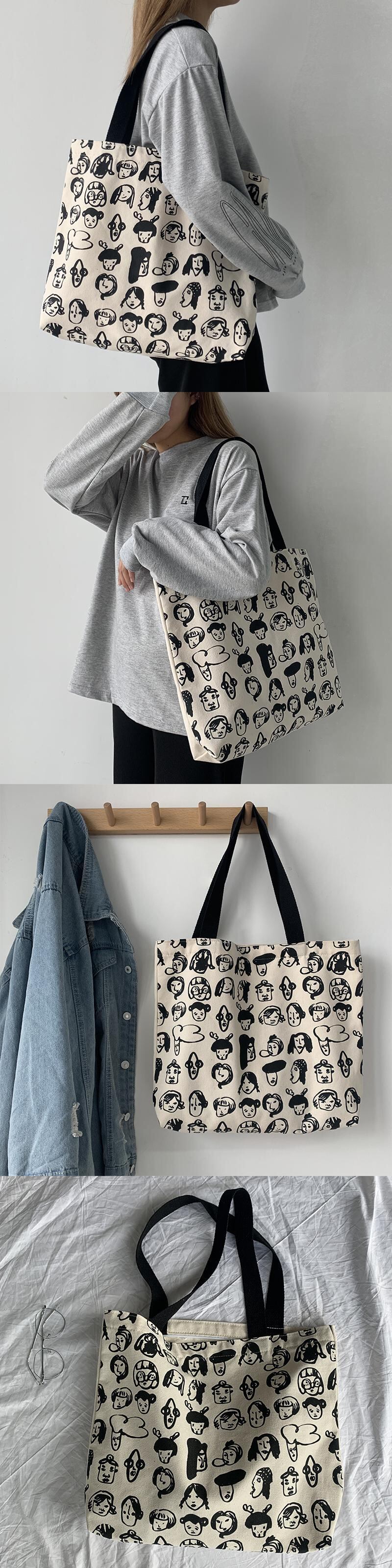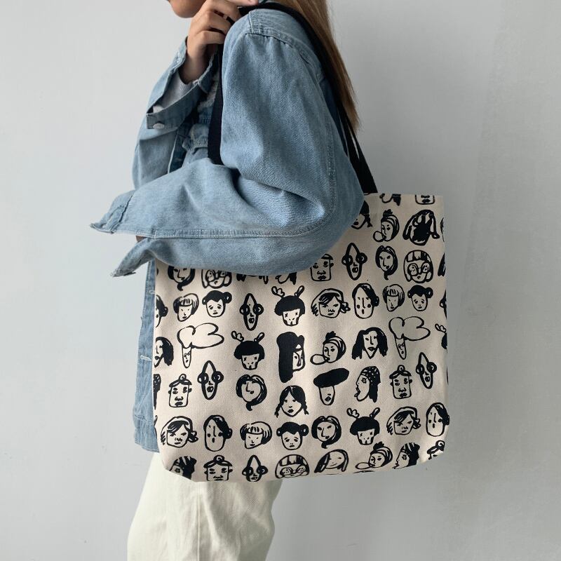 色:人間の頭のイラストベージュバッグ